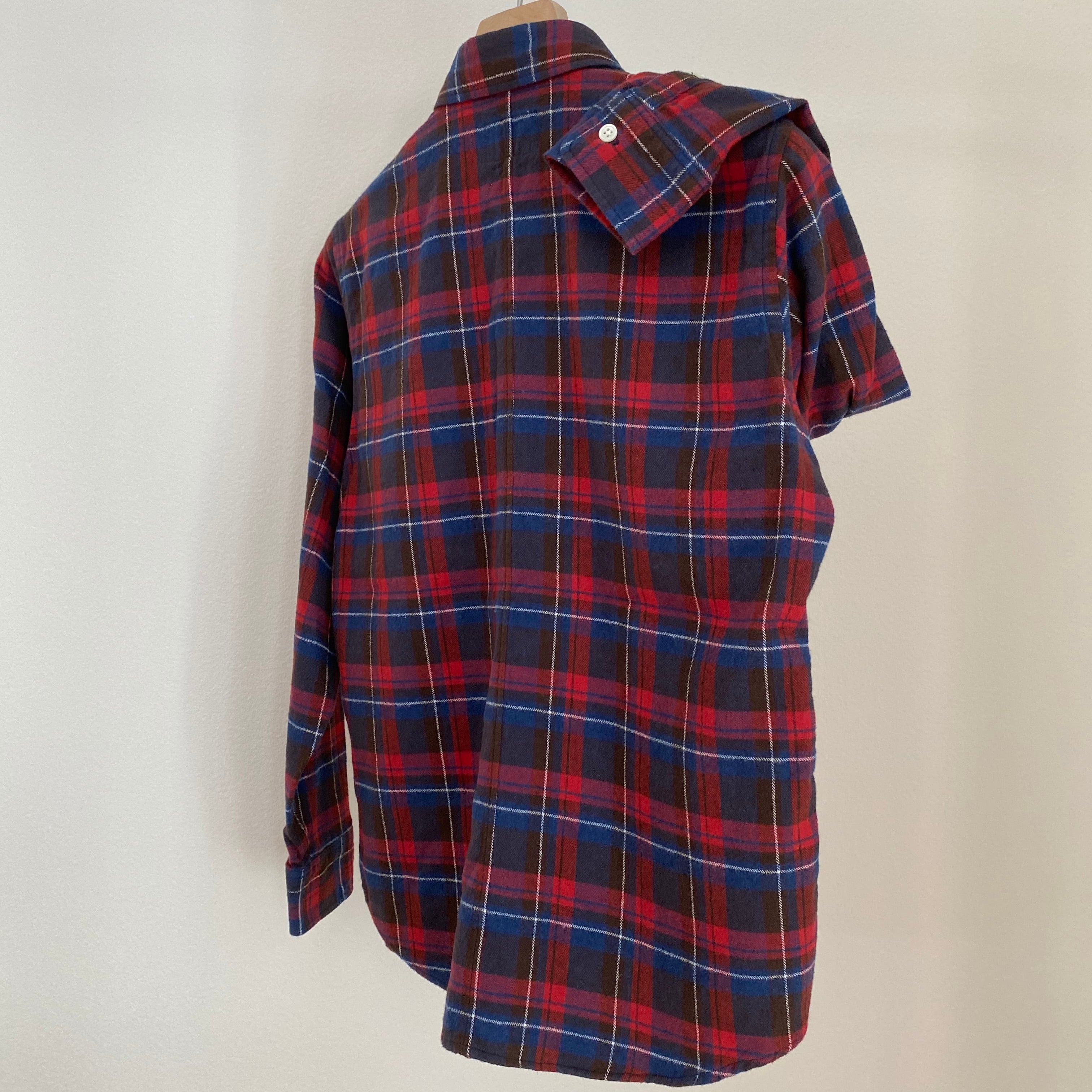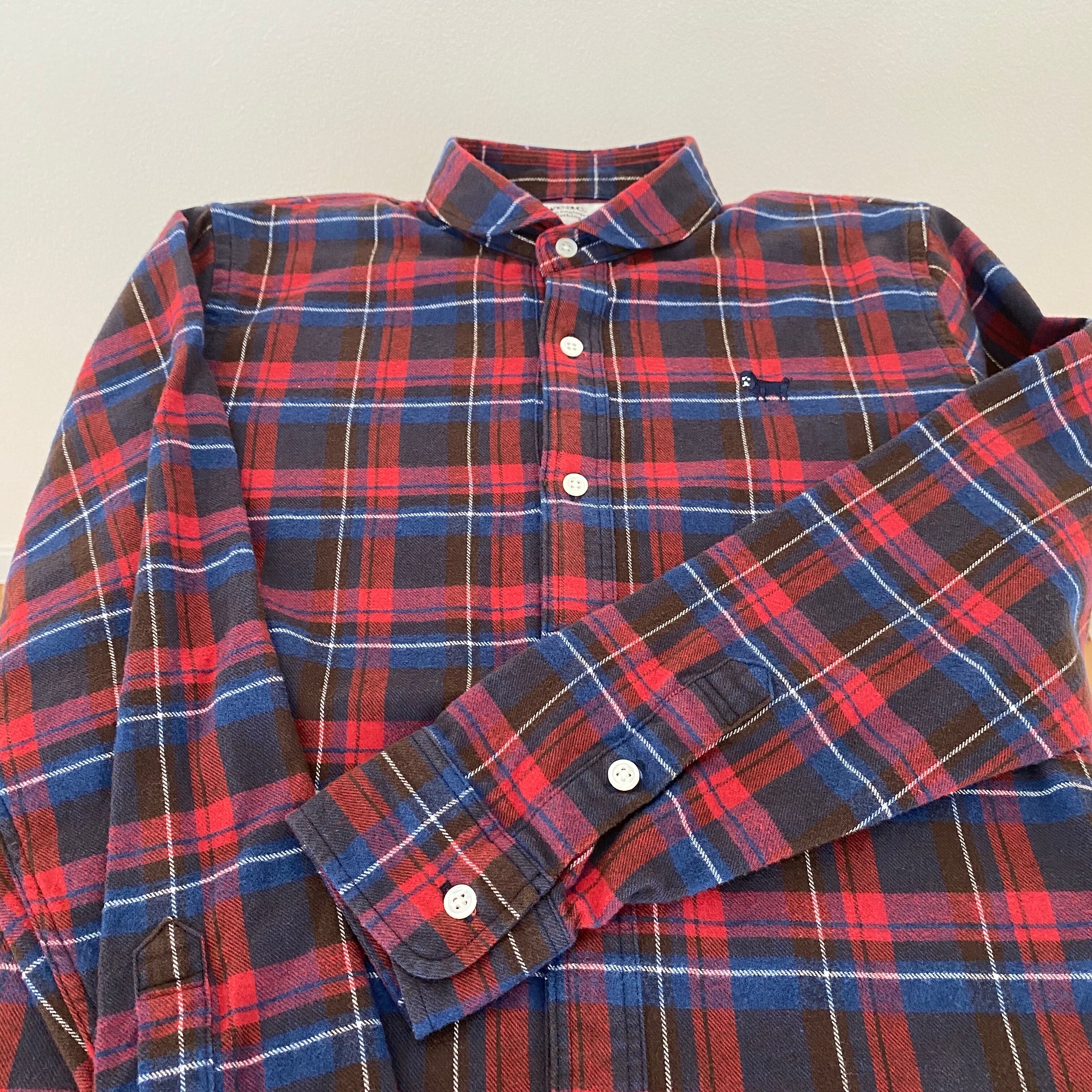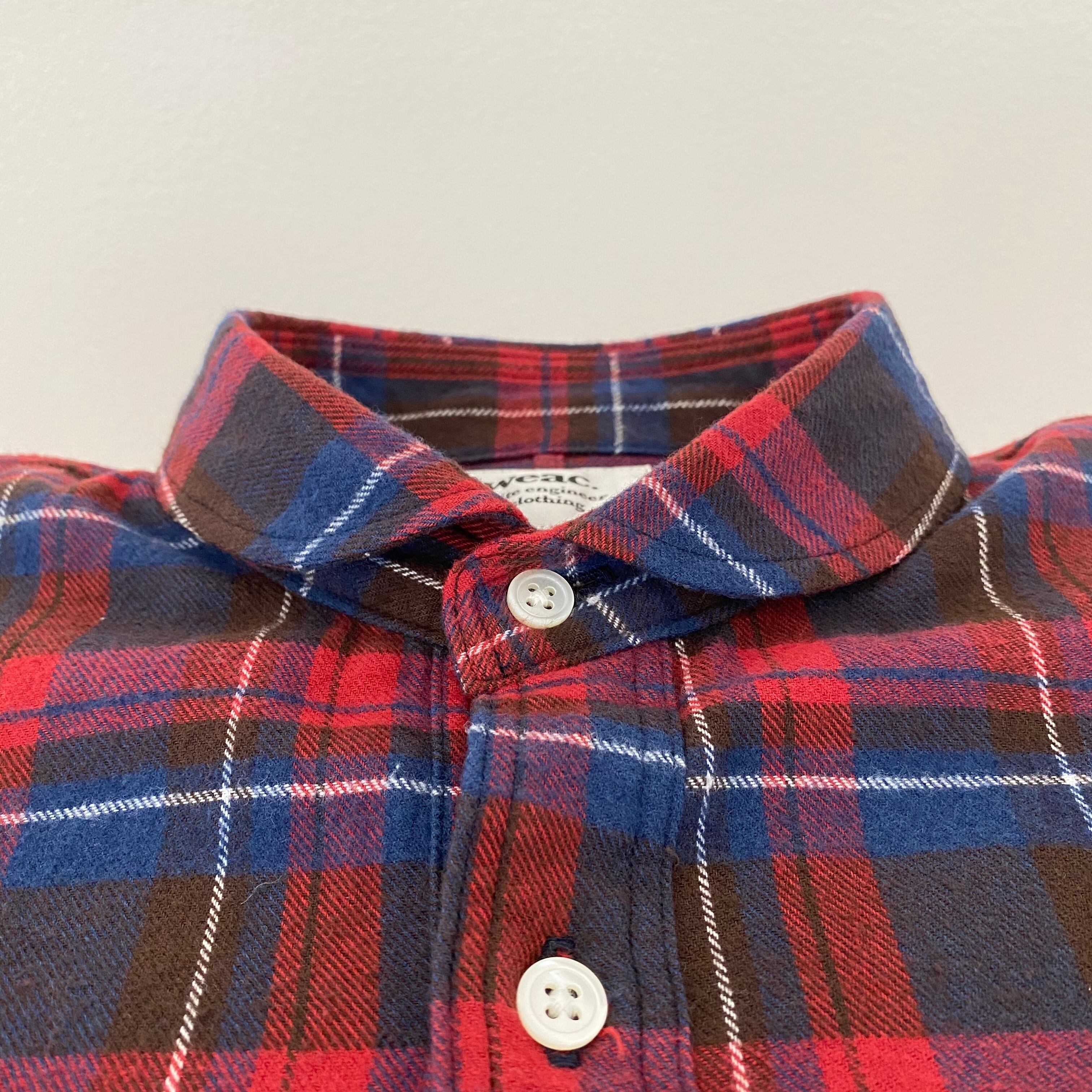 今回のレッドチェックの生地はデッドストックで、5〜10年前の物を使用し、限定品になります。生地は表面がだけ起毛しているライトネルなので、秋冬時期、長く着用可能です。