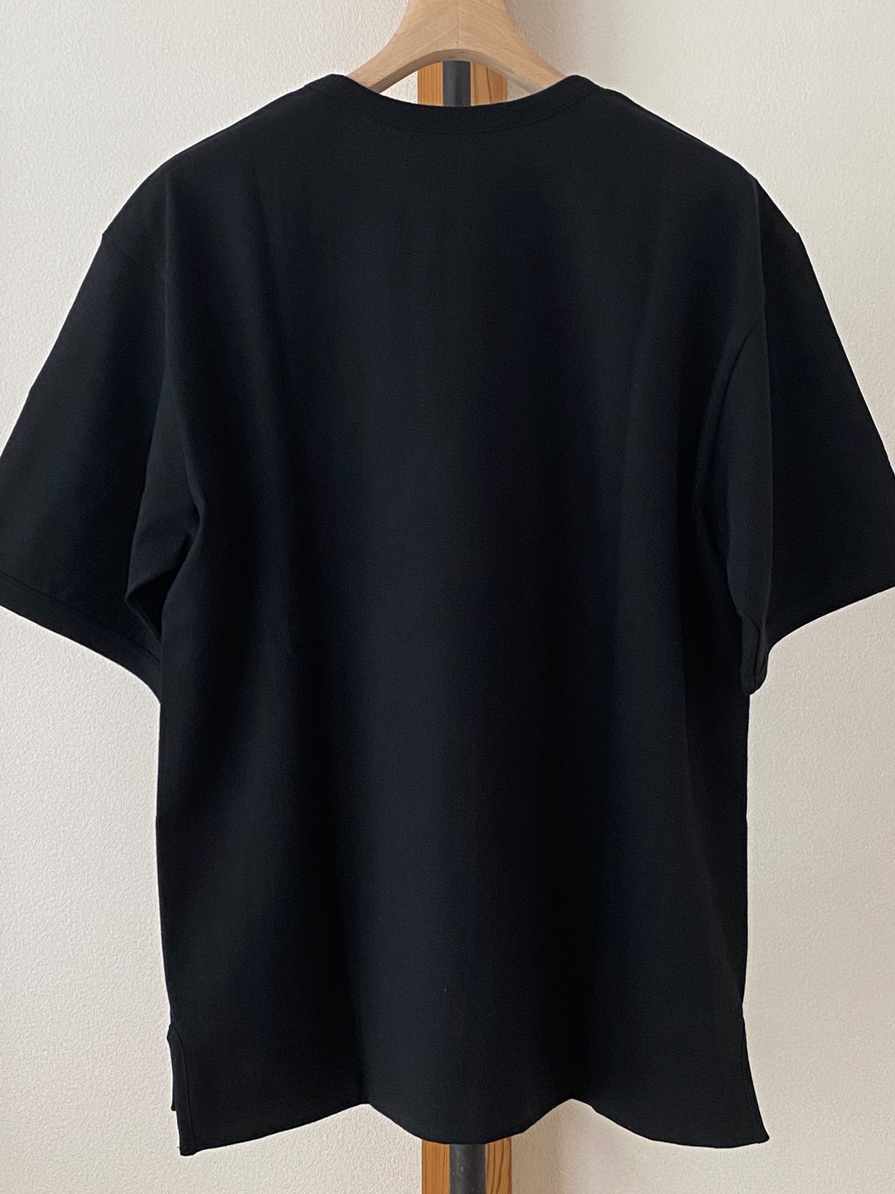ゆったり身幅をとり、更に、脇に縫い目のない丸胴仕上げが、動きやすさと、効果的なアクセントに。